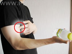 次に、空いている方の手で力こぶ、つまり上腕二頭筋の部分に触れてみてください。